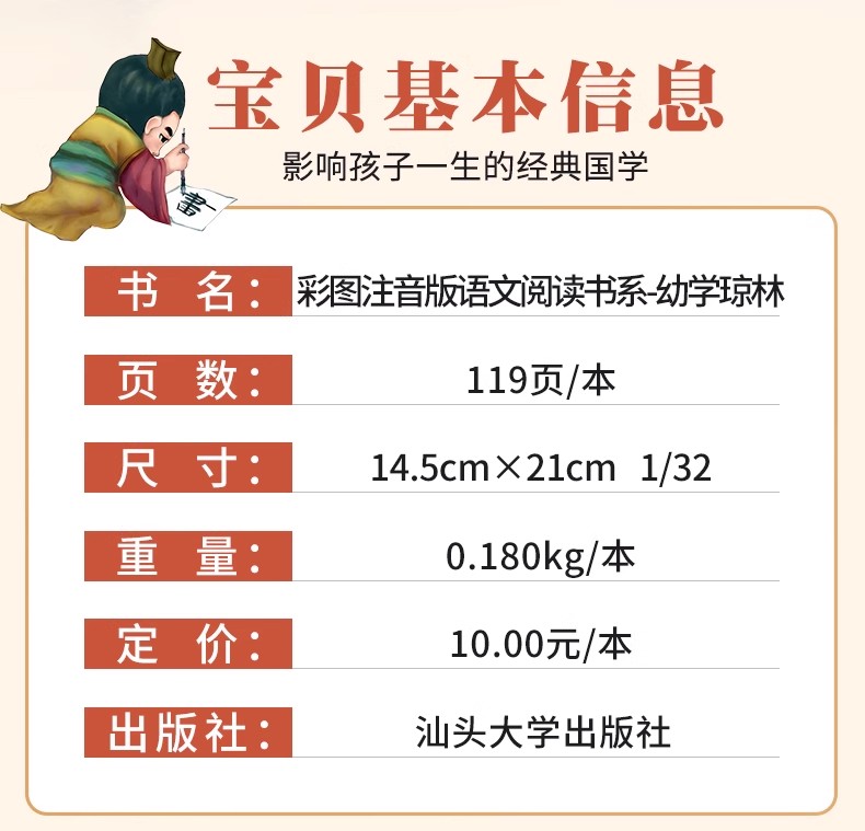 商品名称:国学启蒙经典 小学生语文阅读书系 声律启蒙 笠翁对韵 增广贤文 幼学琼林汕头大学出版社