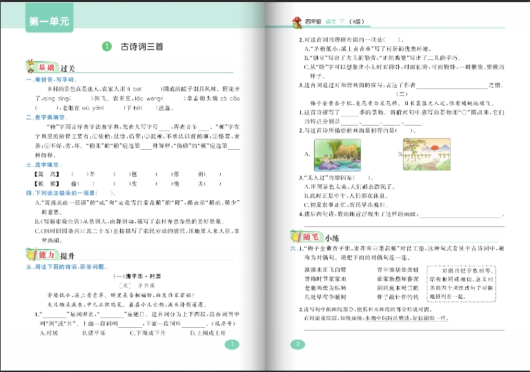 商品名称:语文4年级下册人教黄冈新课堂同步教材 送备考手册,测评卷参考答案