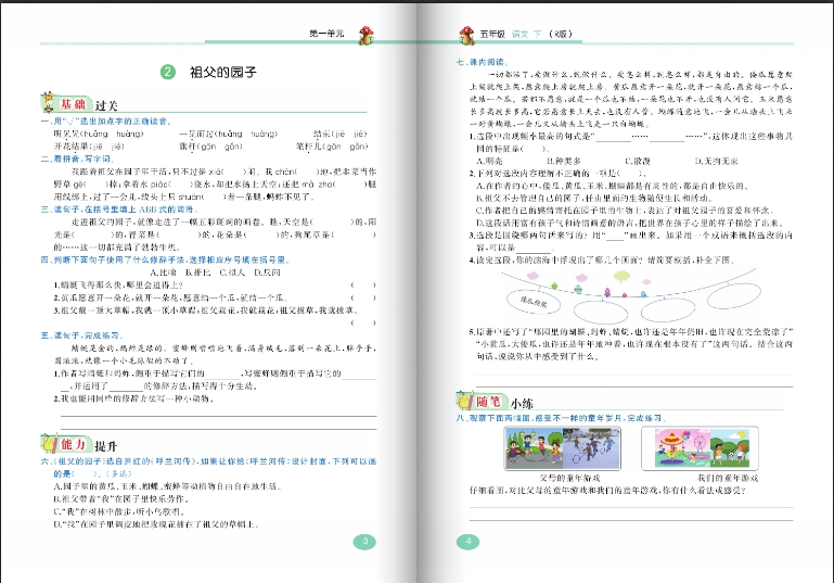 商品名称:语文5年级下册人教黄冈新课堂同步教材 送备考手册,测评卷参考答案