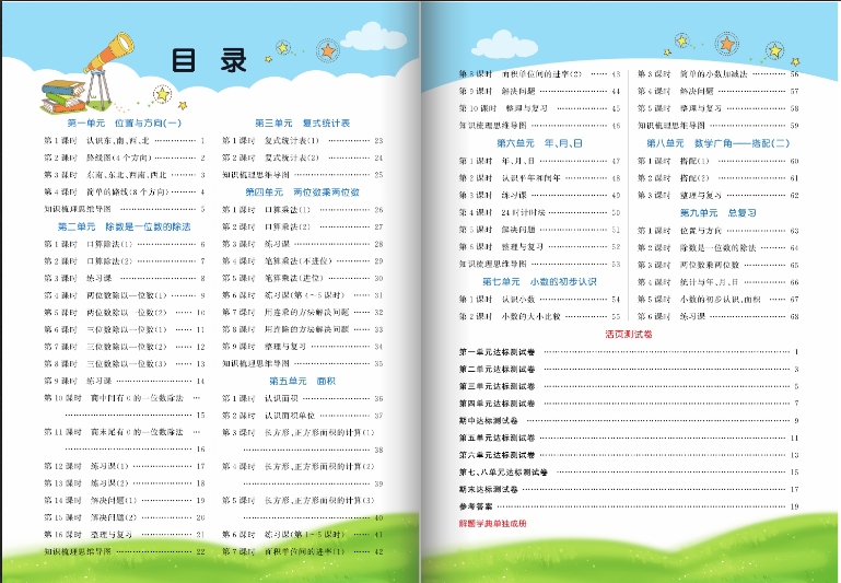 商品名称:黄冈新课堂 数学 人教 三年级下册 送解题学典 测评参考答案