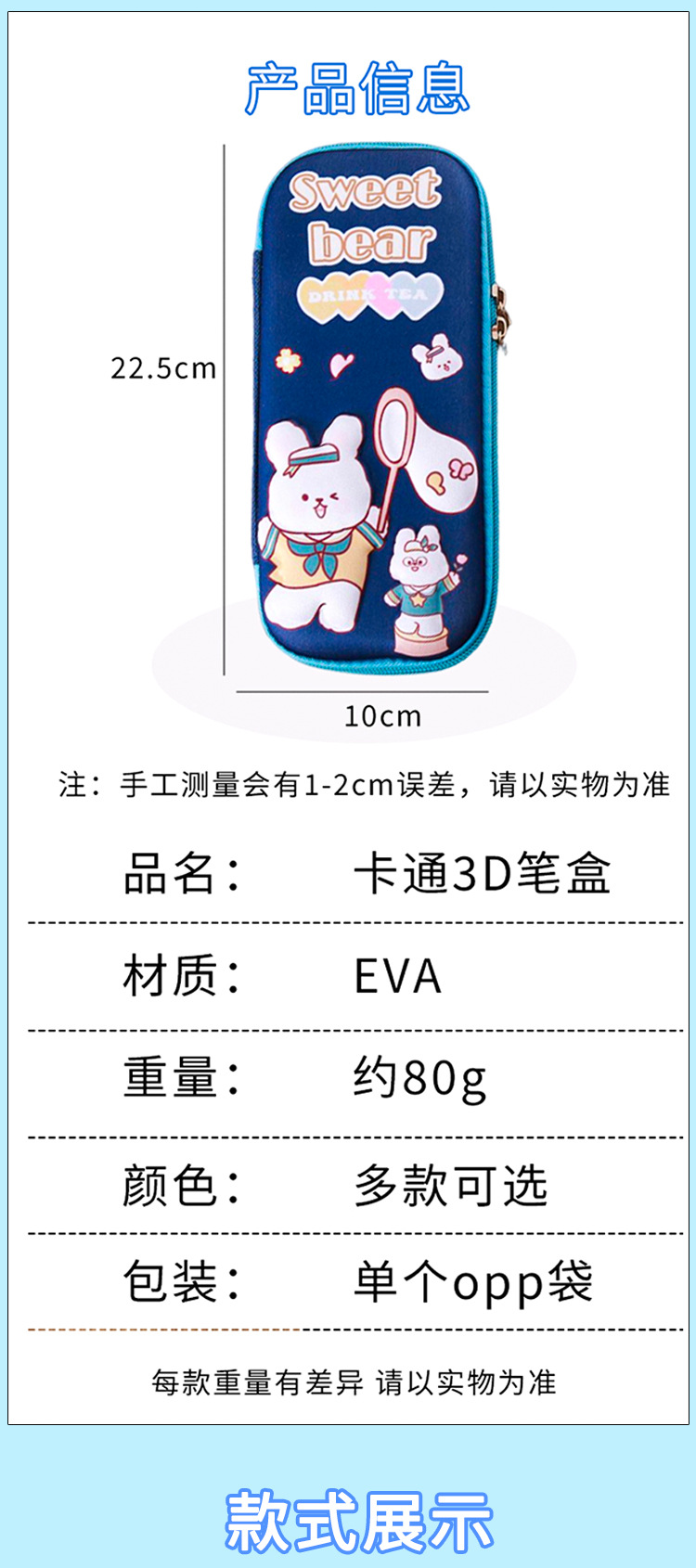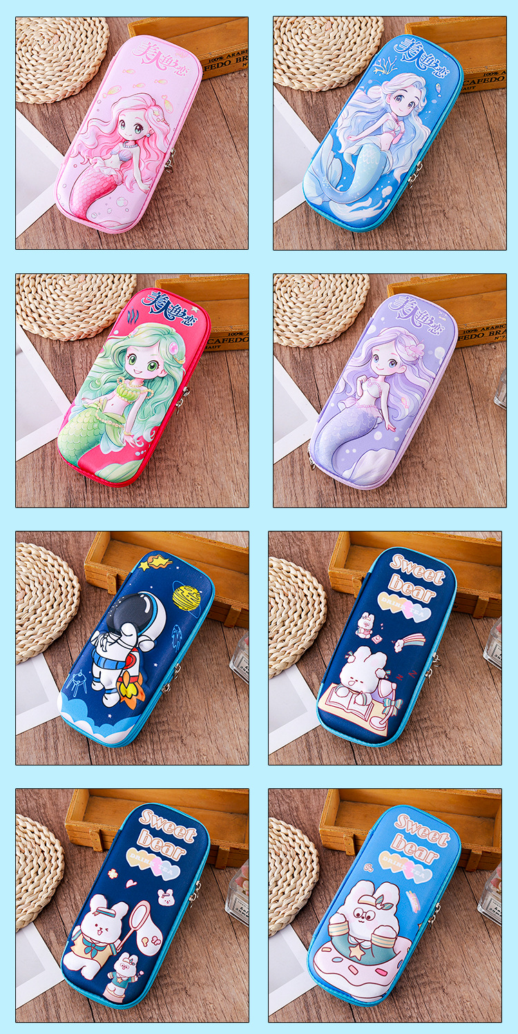 商品名称:粉色美人鱼文具盒学习兔文具盒红绿美人鱼文具盒飞天宇航员文具盒爱心兔学生EVA3D立体文具盒儿童卡通铅笔盒高颜值大容量笔袋可爱文具袋