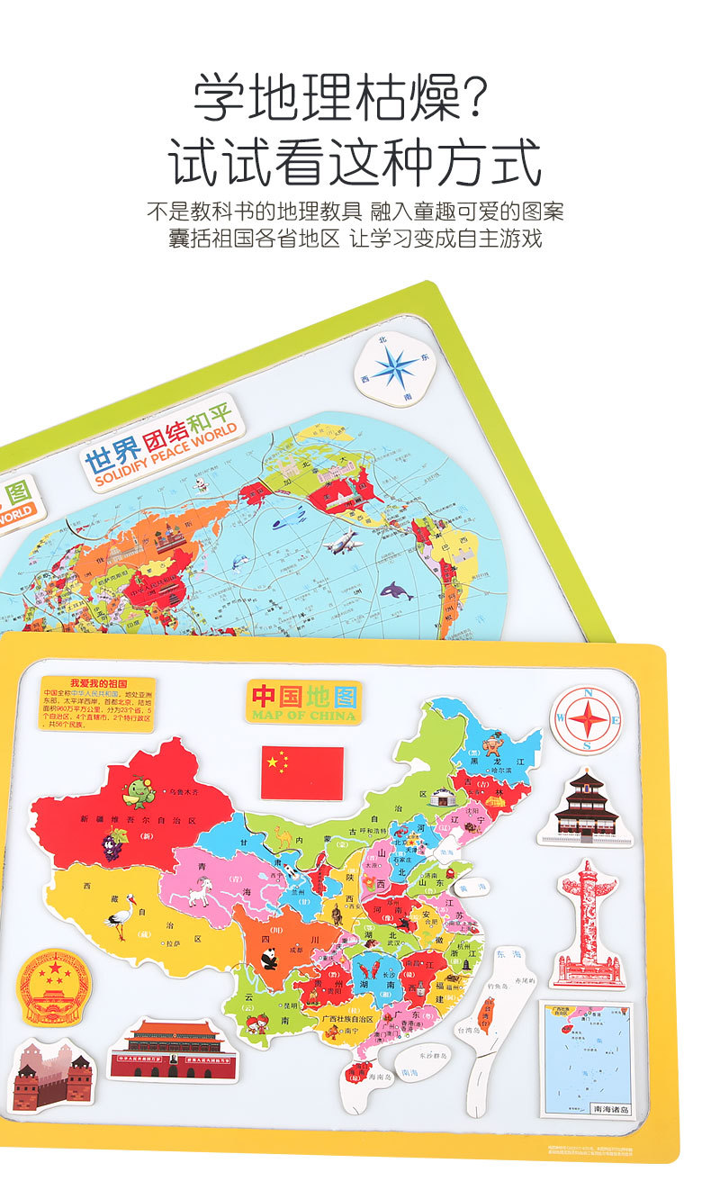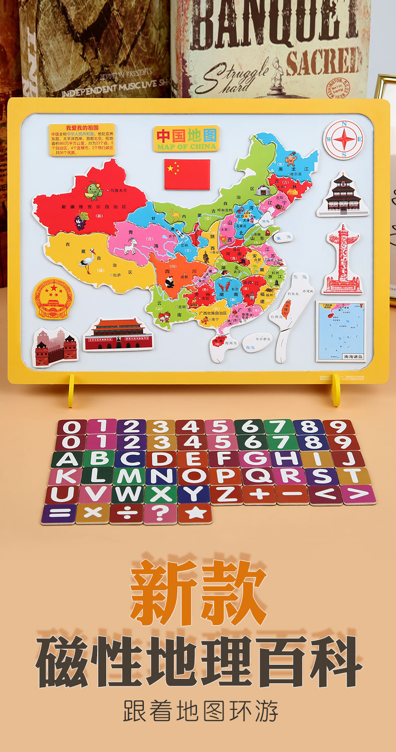 商品名称:磁力中国地图拼图初中学生磁性大号世界6岁上9男女孩儿童益智玩具