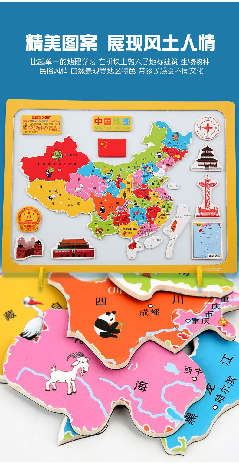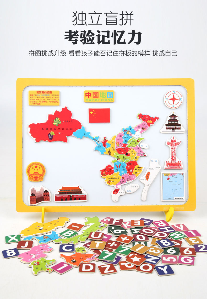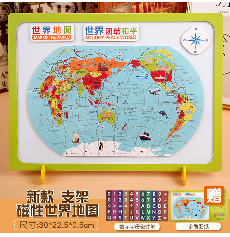 商品名称:磁力中国地图拼图世界地图拼图初中学生磁性大号世界6岁上9男女孩儿童益智玩具