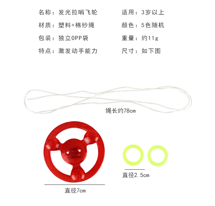 商品名称:闪光拉线飞轮发光飞轮闪光陀螺拉哨拉响飞轮陀螺