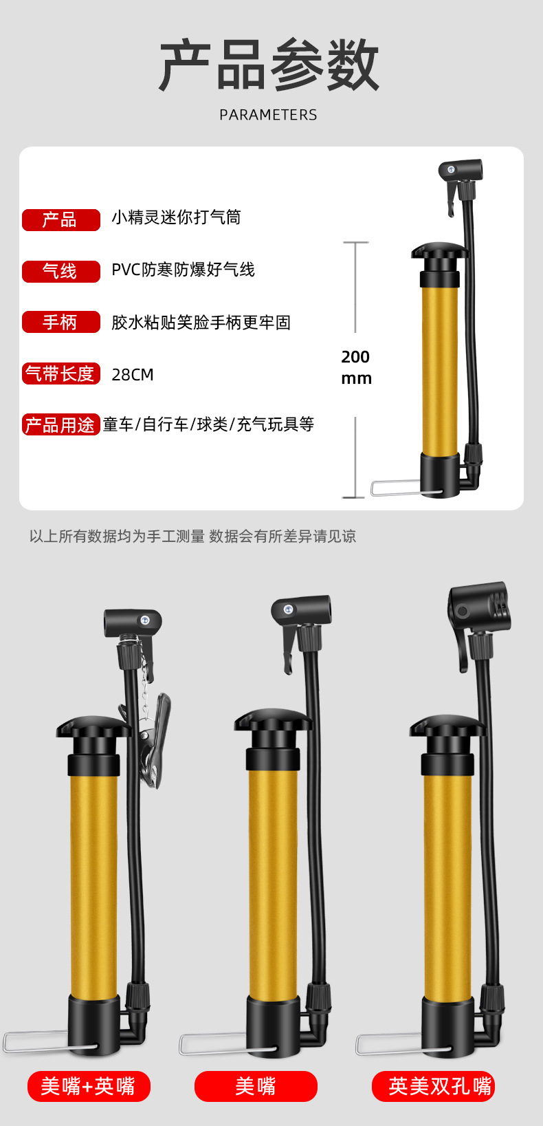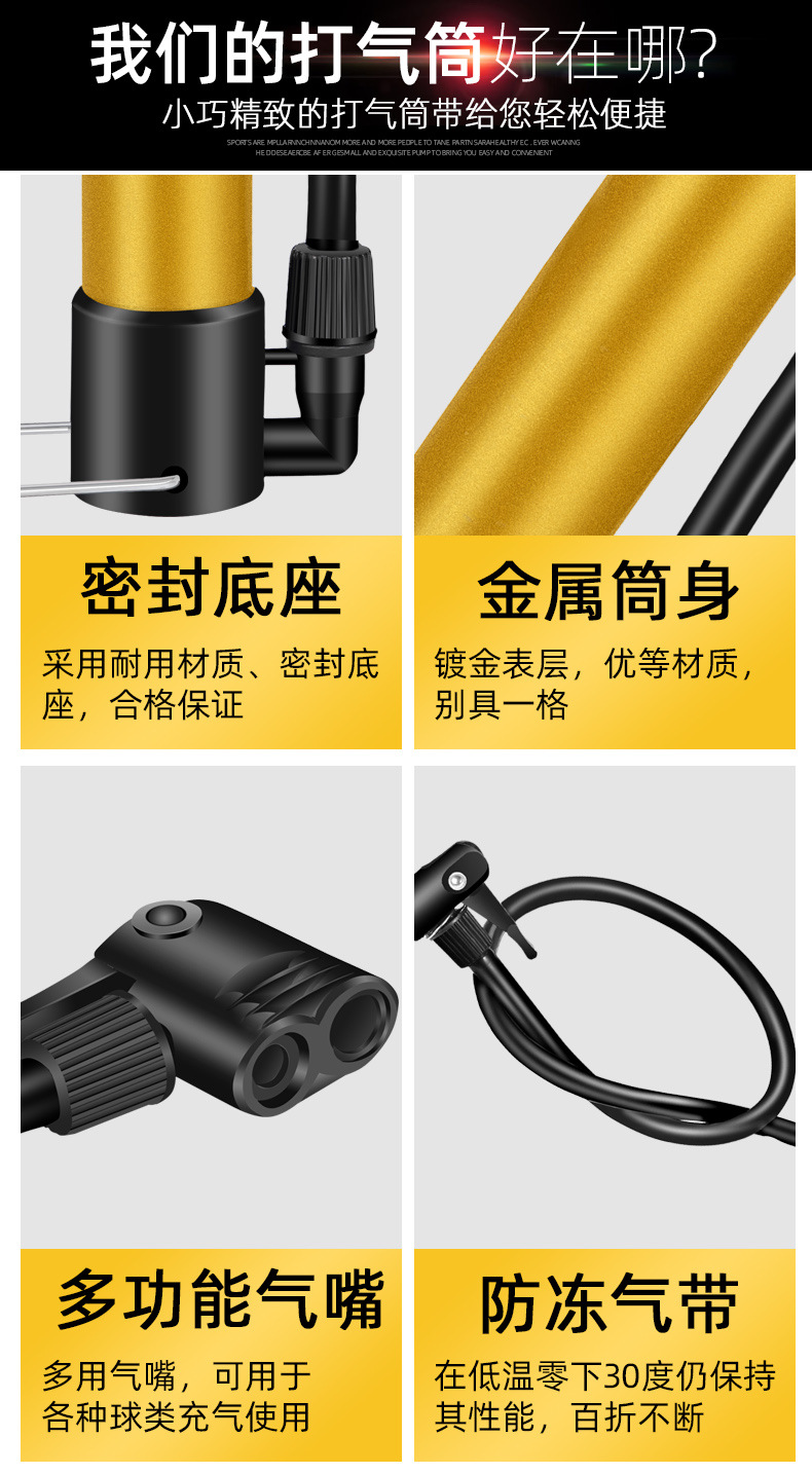 商品名称:小型迷你高压打气筒篮球足球瑜珈球气球充气沙发泳游圈电动车自行车便携高压打气筒