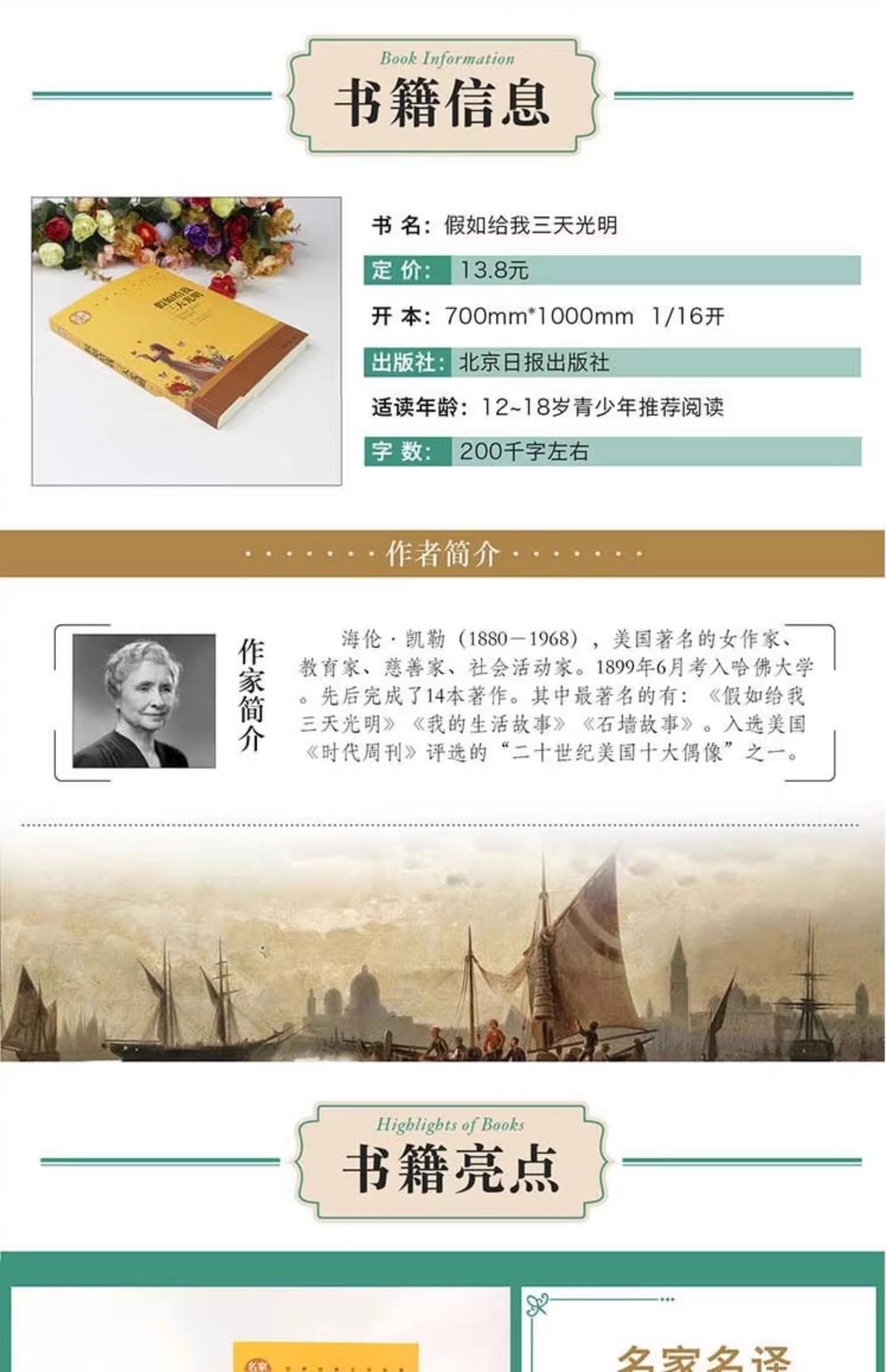 商品名称:名家名译世界经典文学名著假如给我三天光明 海伦凯勒原著世界经典文学名著 北京日报出版社