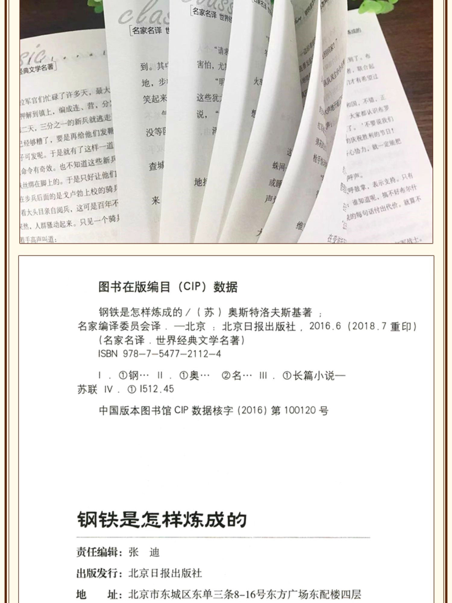 商品名称:名家名译世界经典文学名著 钢铁是怎样炼成的 中小学生青少年课外阅读书 北京日报出版社