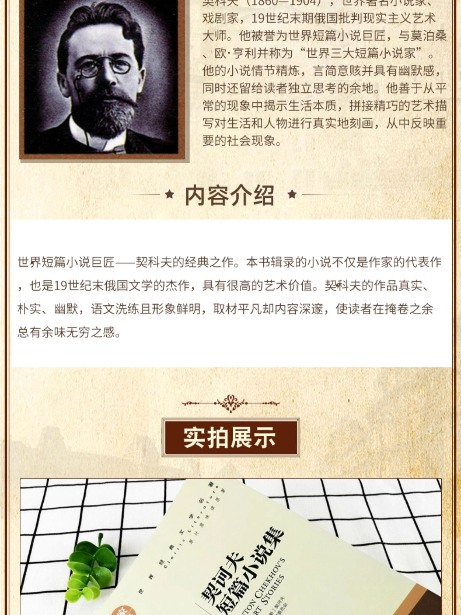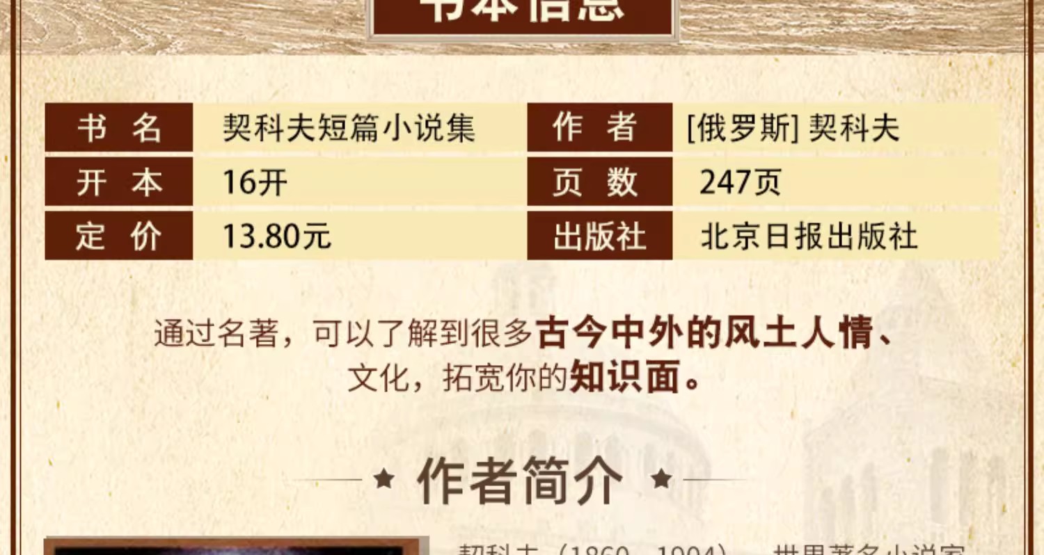 商品名称:名家名译世界经典文学名著 契诃夫短篇小说集 中小学生青少年课外阅读书