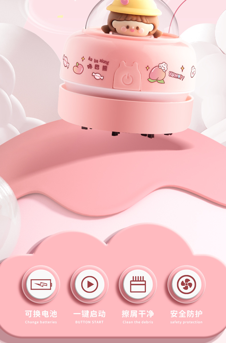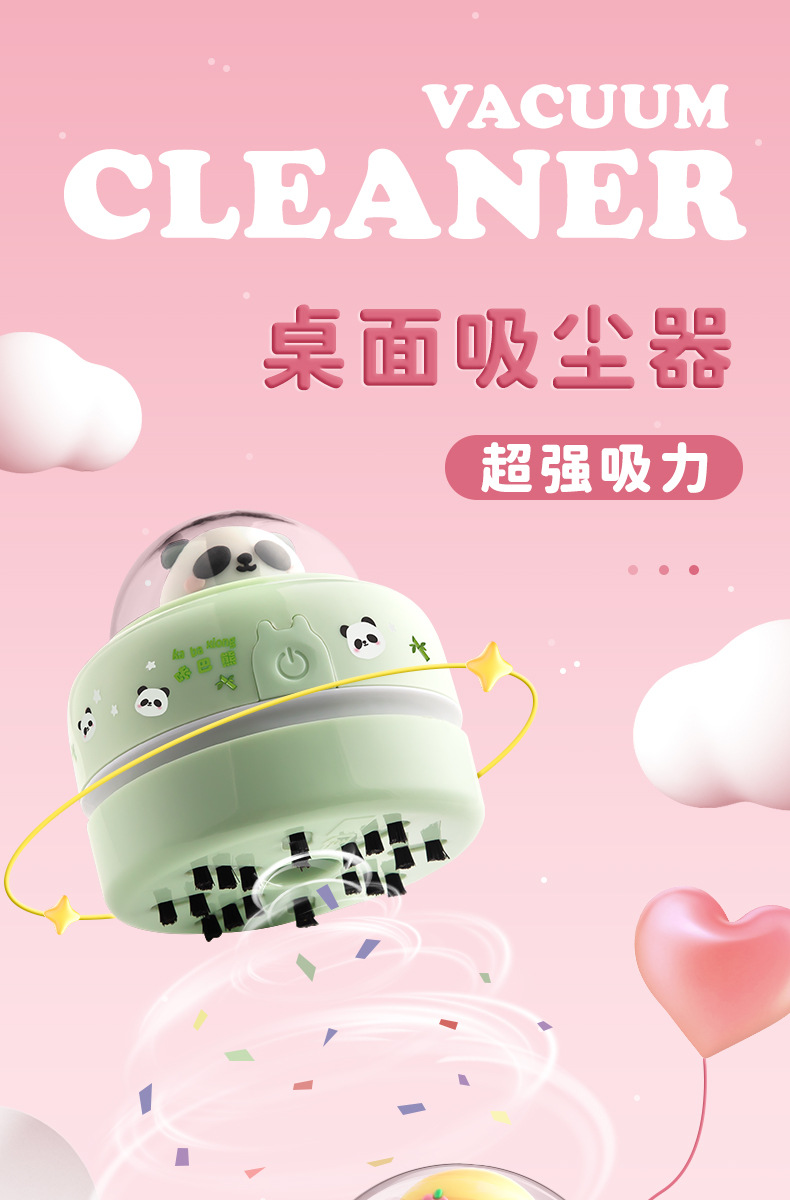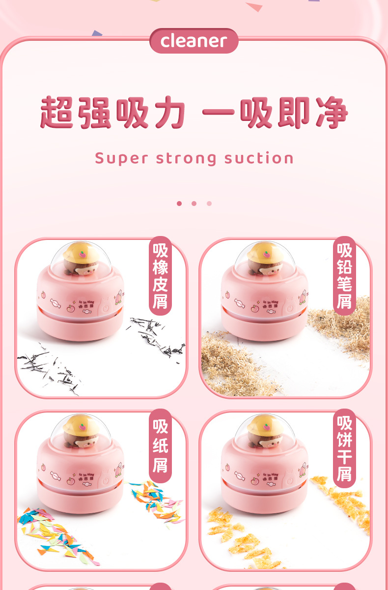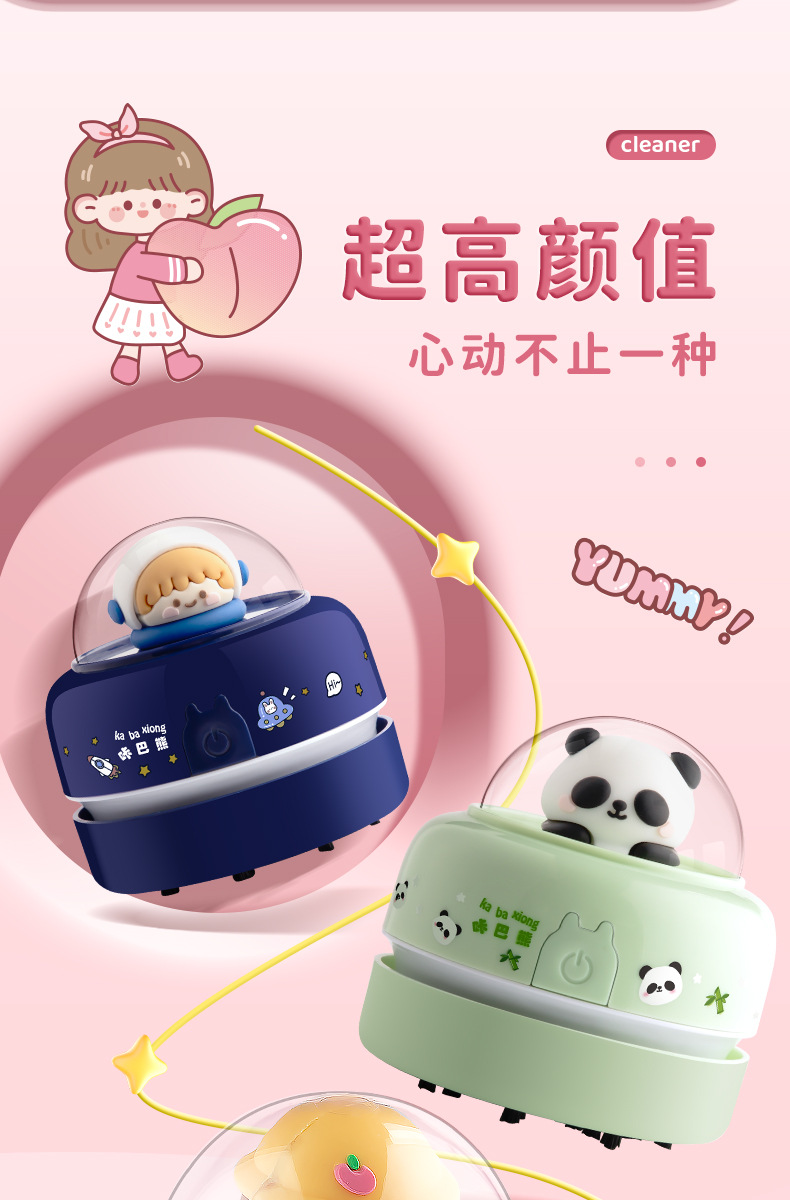 商品名称:电池款吸尘器-熊猫胖达 电池款吸尘器-桃桃茶话会 小学生书桌迷你自动吸尘器儿童卡通橡皮纸屑办公桌面专用灰尘神器