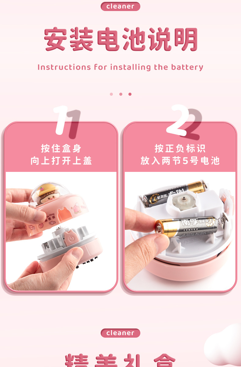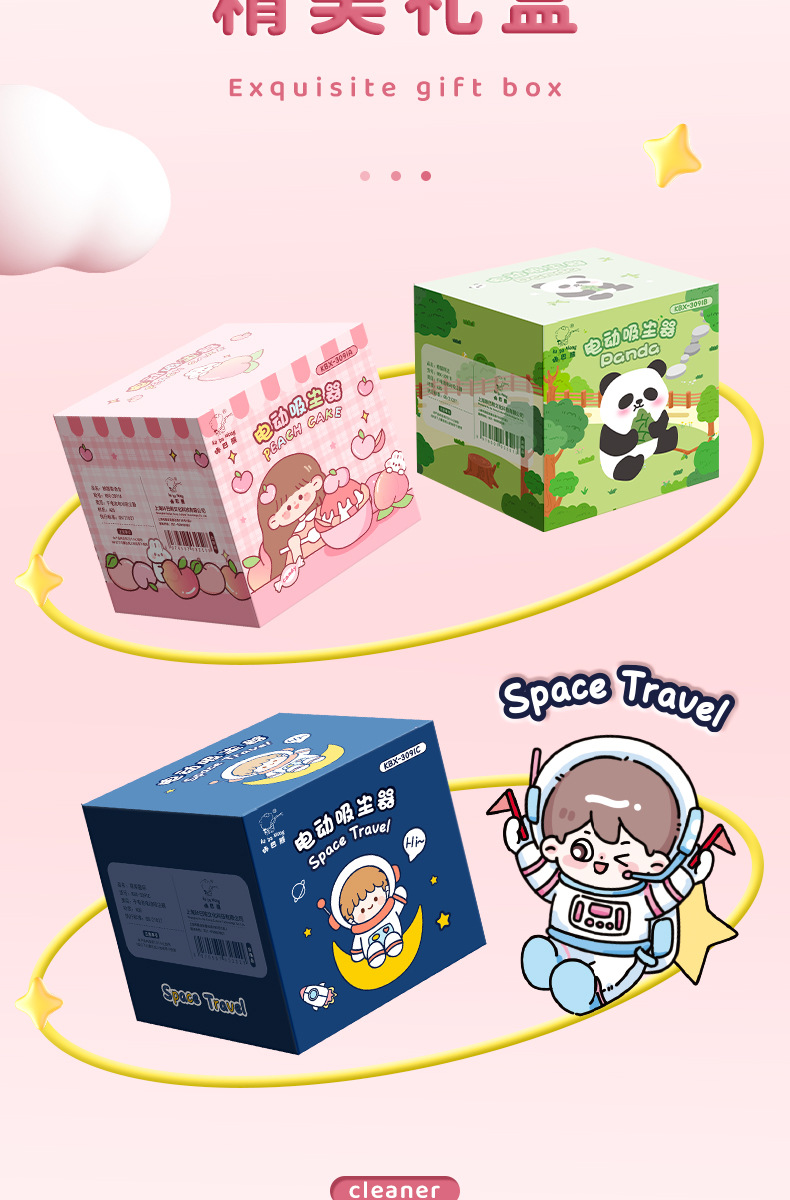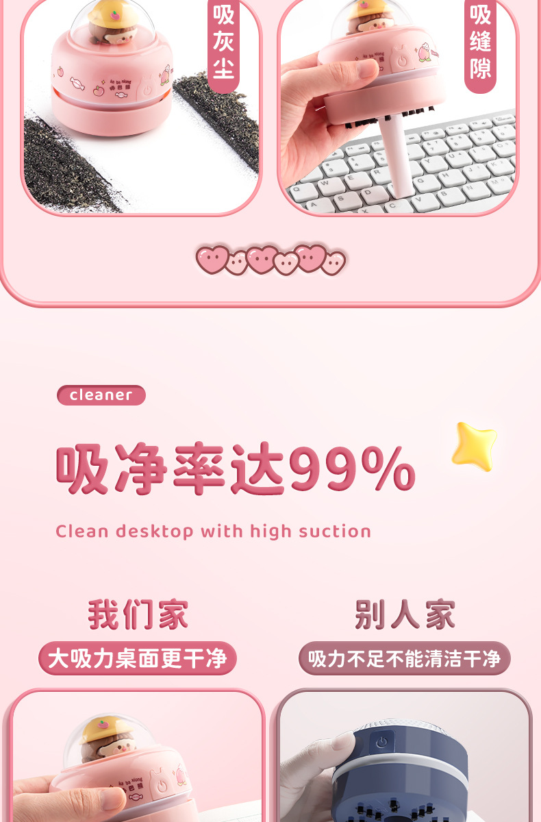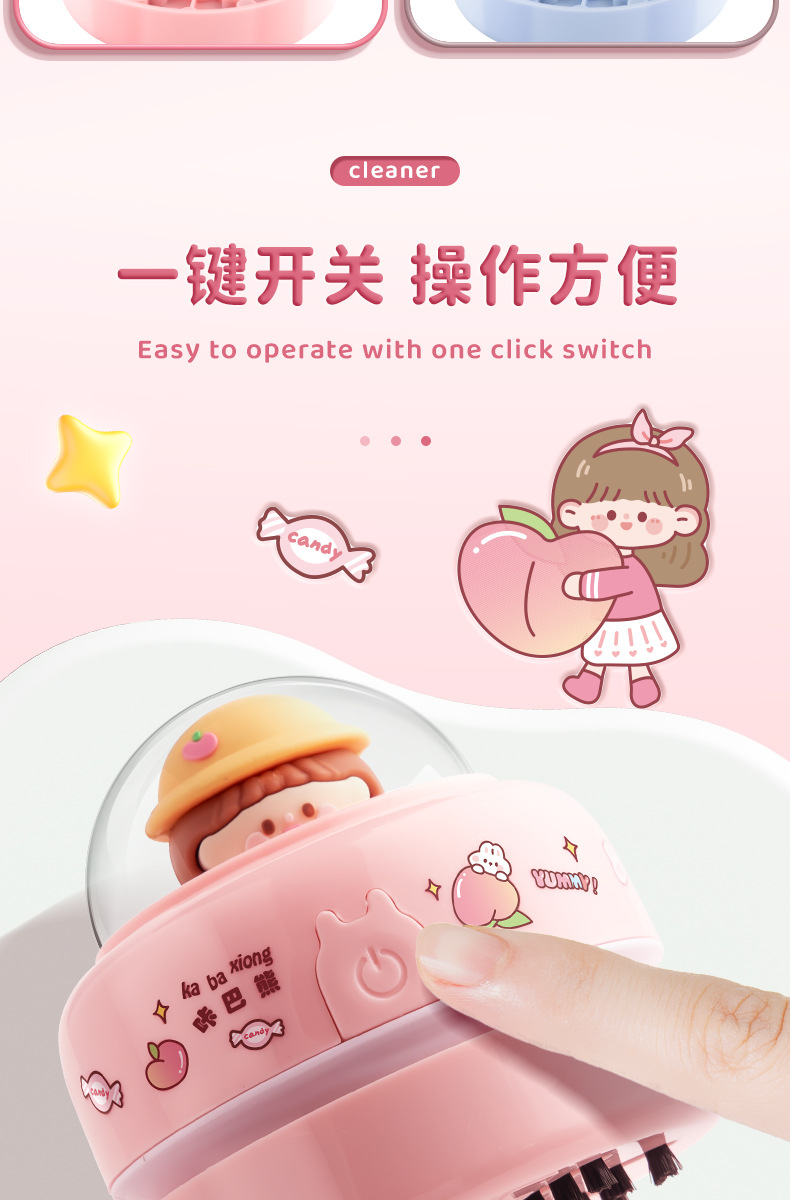 商品名称:电池款吸尘器-熊猫胖达 电池款吸尘器-桃桃茶话会 小学生书桌迷你自动吸尘器儿童卡通橡皮纸屑办公桌面专用灰尘神器