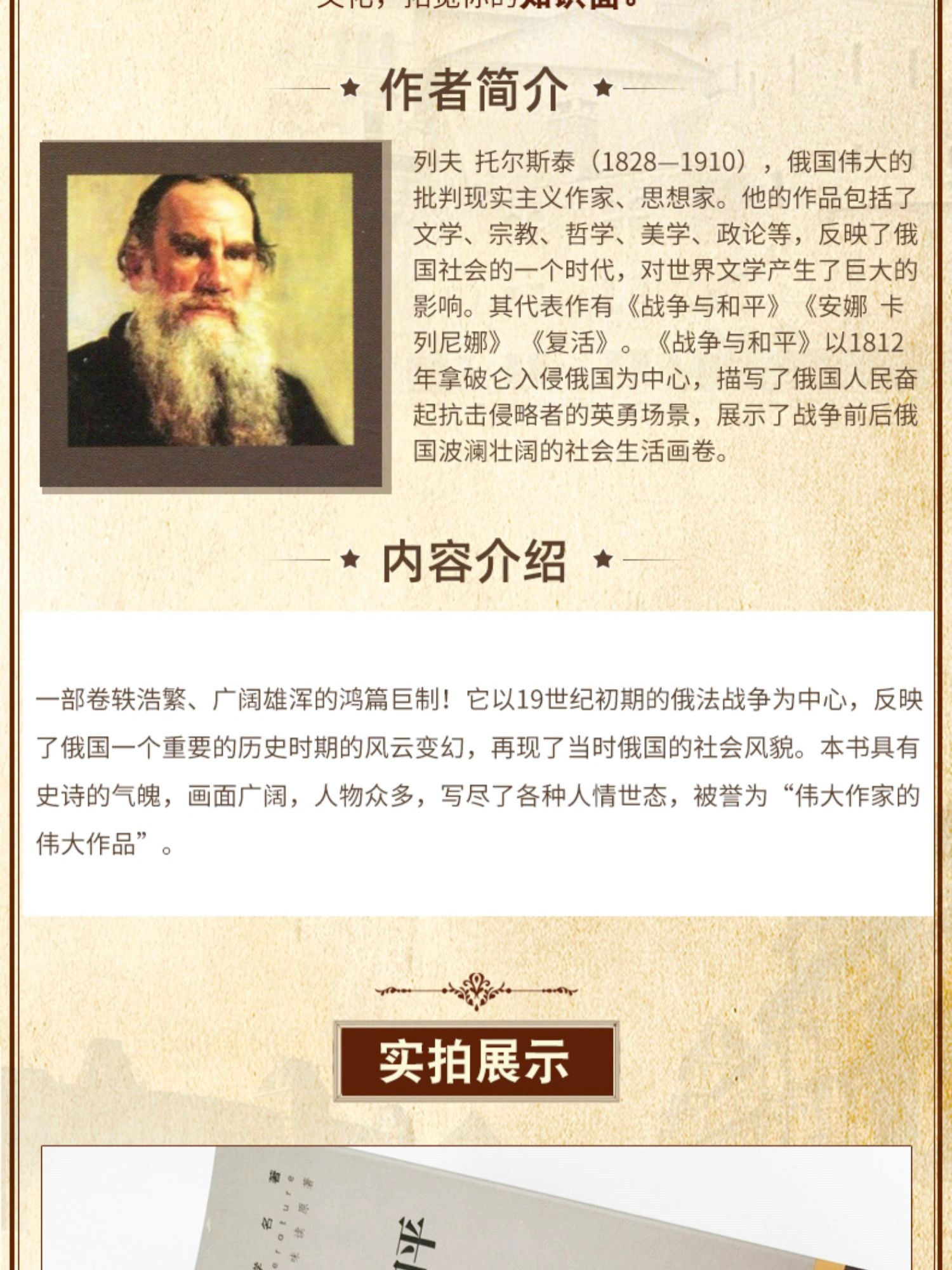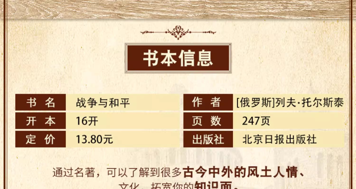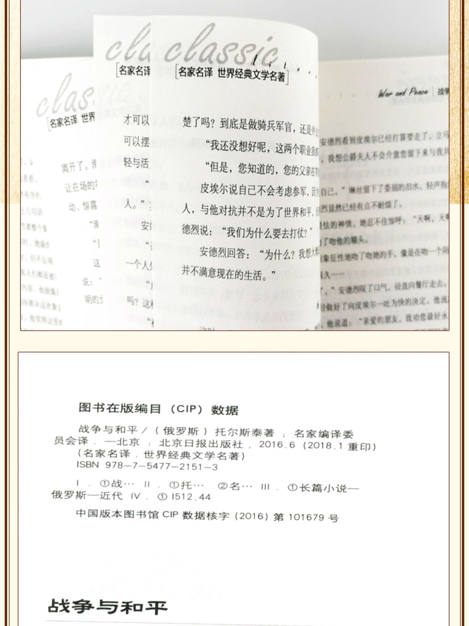 商品名称:名家名译世界经典文学名著 战争与和平 北京日报出版社 青少年初中高中学生课外读物