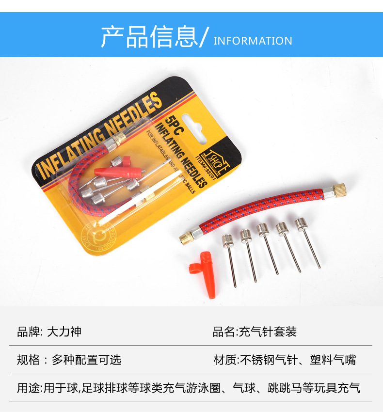 商品名称:打气筒配件足球篮球充气针球针套装充气头气管打气金属针包装组合
