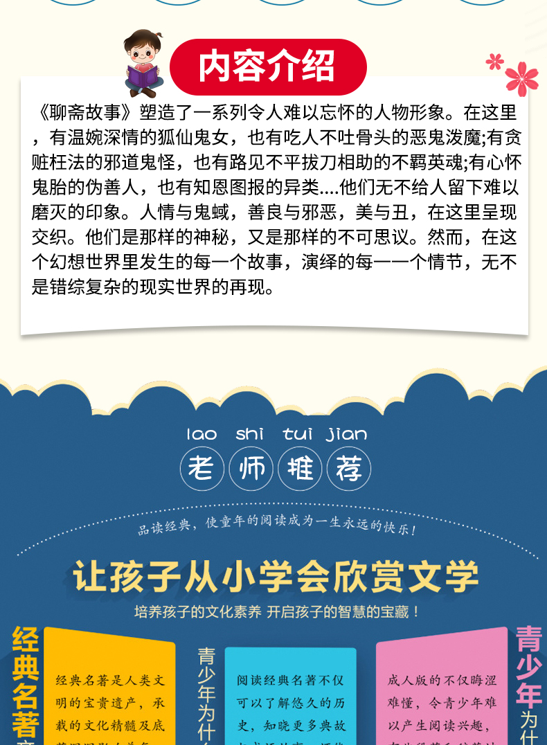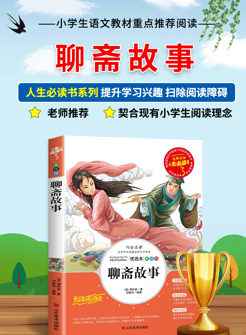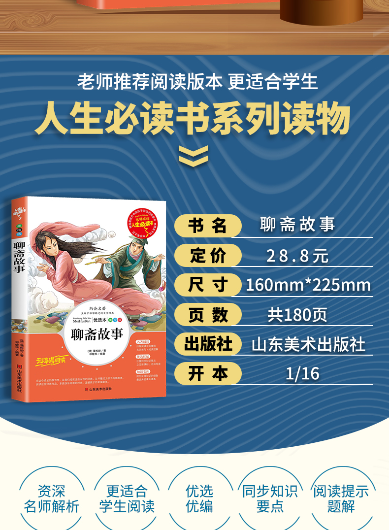 商品名称:人生必读书--聊斋故事 三年级四年级五六年级课外书籍山东美术出版社青少年版无障碍阅读名著中国古典文学