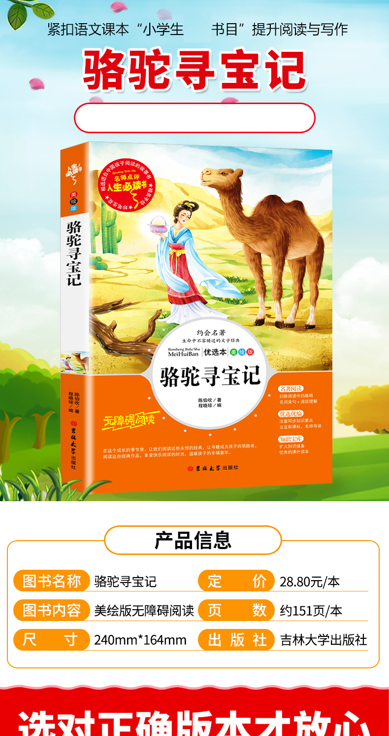 商品名称:人生必读书--骆驼寻宝记 学生课外阅读书籍三四五六年级课外书青少年读物经典儿童文学名著童话故事书 吉林大学出版社