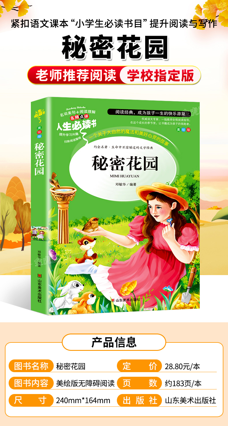 商品名称:人生必读书--秘密花园 小学生课外书导读美绘版小学文学阅读原著完整书籍山东美术出版社