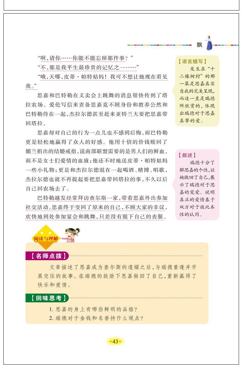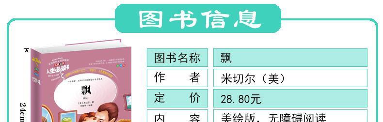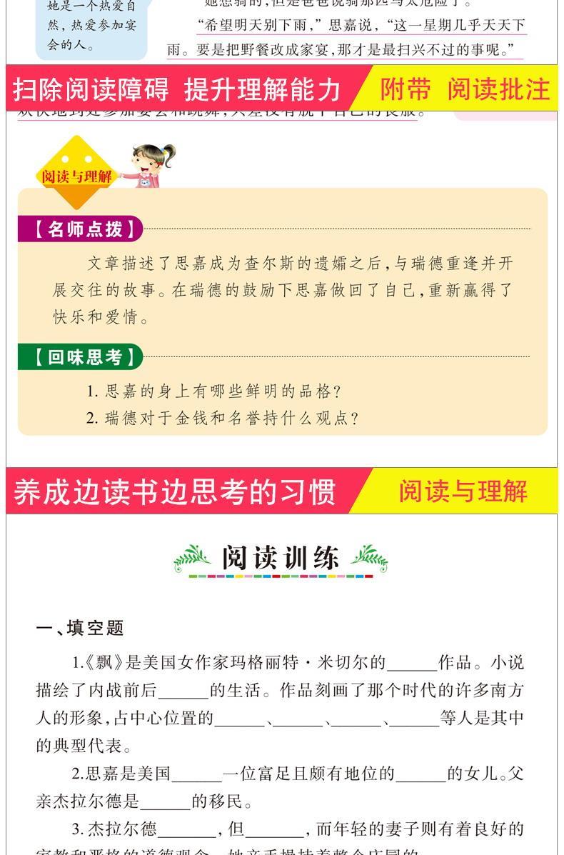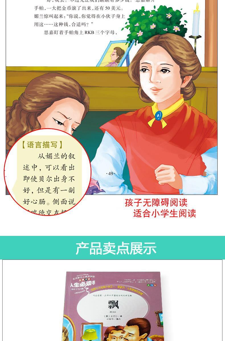 商品名称:人生必读书--飘 小学生青少年三四五六年级经典世界名著彩图美绘插画版名师导读带批注读后感 山东美术出版社