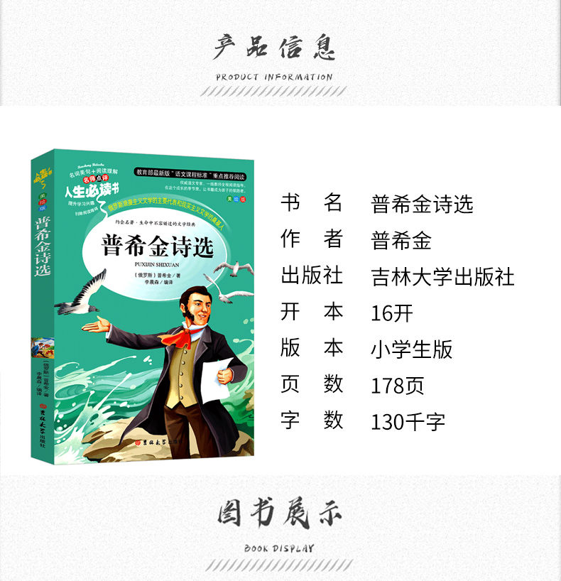 商品名称:人生必读书--普希金诗选 小学生课外阅读书籍 吉林大学出版社