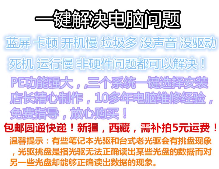 商品名称:台式电脑,笔记本电脑一键安装系统重装启动光盘XP win7旗舰纯净版DVD碟