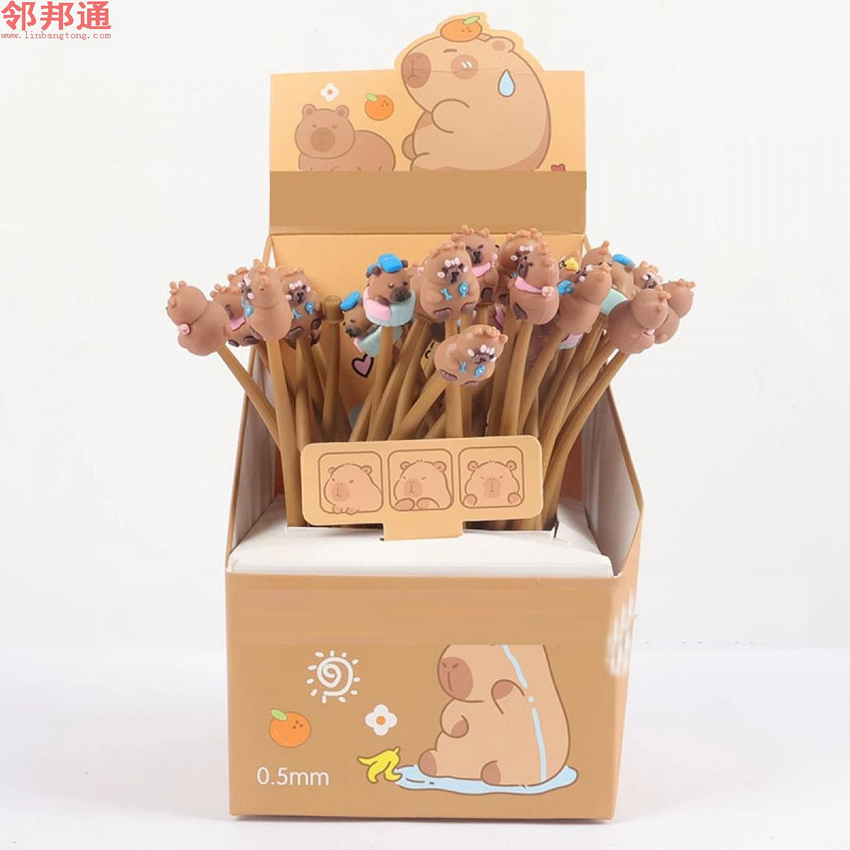 卡皮巴拉卡通贴片按动笔0.5mm学生书写笔黑色中性笔水豚笔