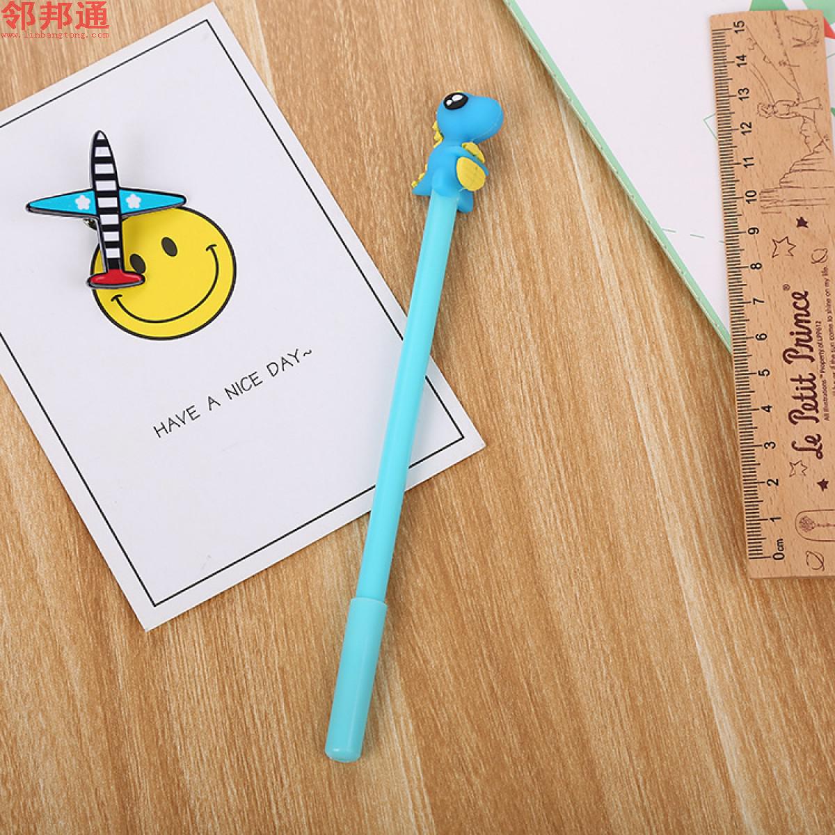 创意文具蓝色恐龙硅胶头中性笔 可爱卡通学习办公水性签字笔