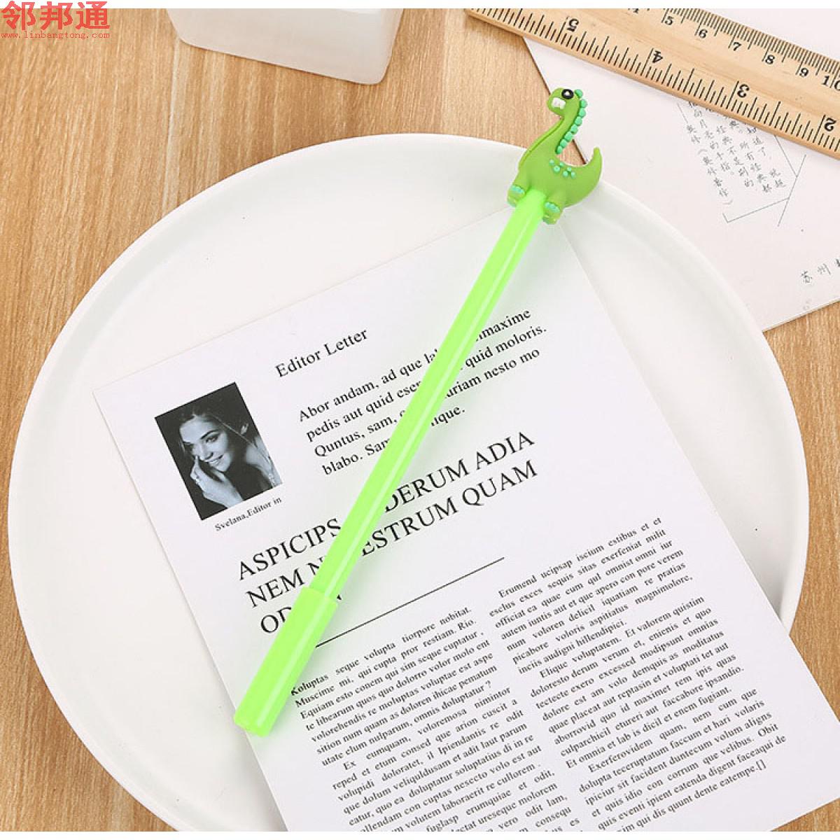 创意文具绿色恐龙硅胶头中性笔 可爱卡通学习办公水性签字笔