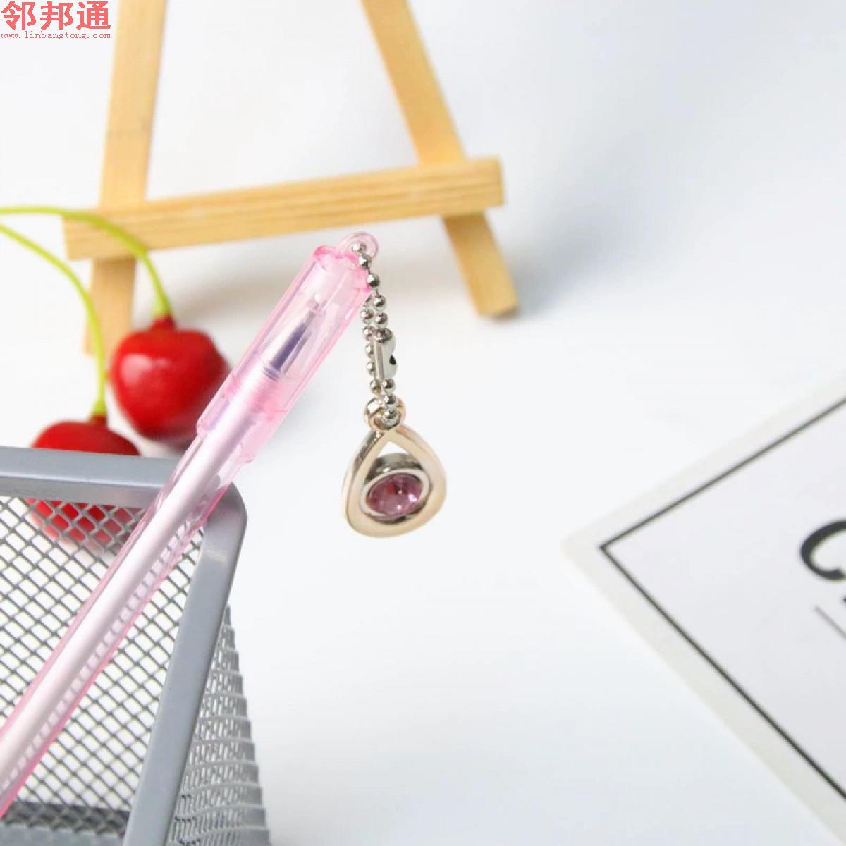 粉色挂件笔韩国ins少女心水滴宝石挂件笔小清新可爱学生考试签字笔吊坠水笔