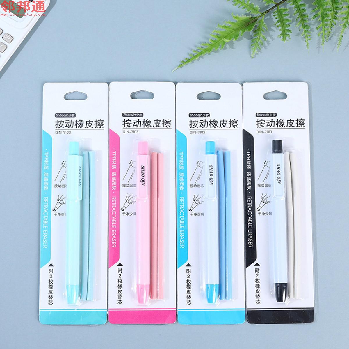 创意按动橡皮擦可换替芯小学生儿童伸缩可推式美术橡皮