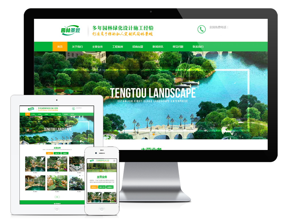 商品名称:响应式绿色清新园林环境网站(带手机端)
